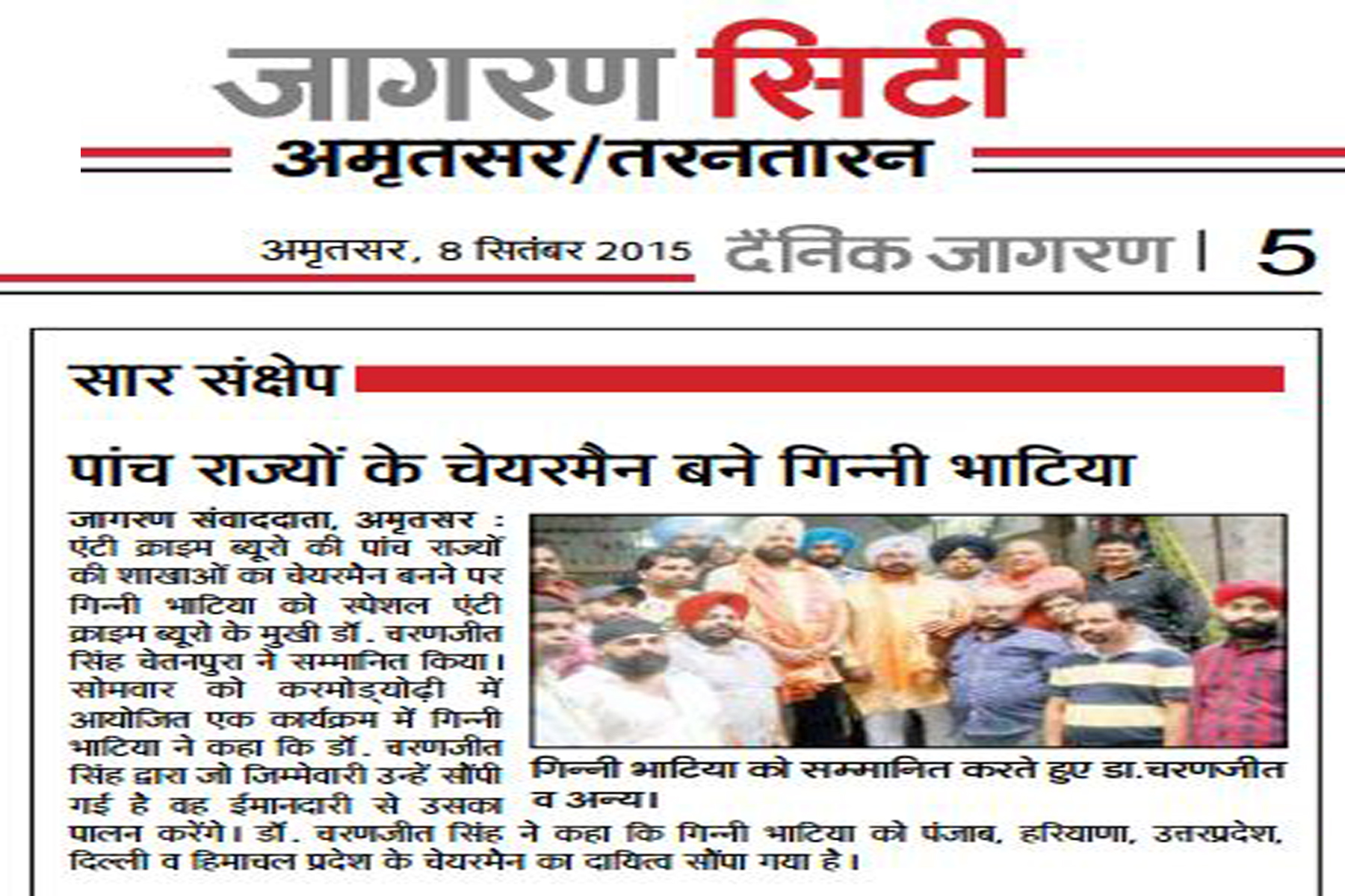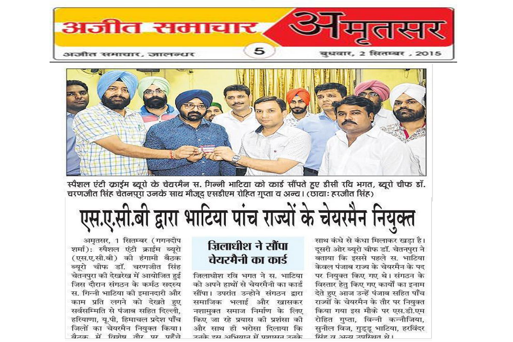 | PANCH STATE CHAIRMAN BANE GINNI BHATHIA Dated (08-09-2015) |