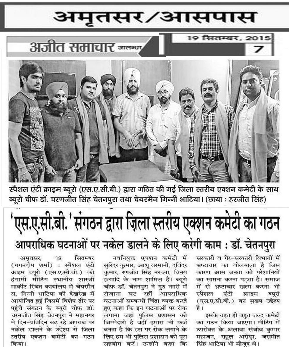 | SPECIAL ANTI CRIME BUREAU NE KITA ACTION TEAM DA GATHAN Dated (21-09-2015) |